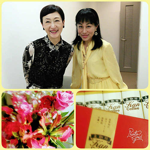 心癒される大好きなピンク系の花束♥島根県浜田市出身の方が世界初の缶コーヒーを作ったご縁から出来た、こだわりの「珈琲入り羊羹」も嬉しく頂きました!
